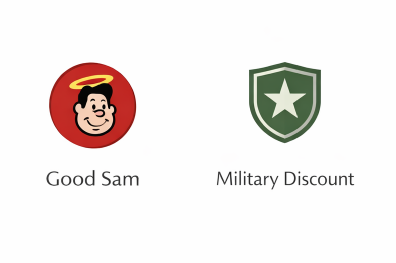 We offer a 10% discount for active Good Sam members and military/first responders. Discounts may only be applied to reservations booked by phone.